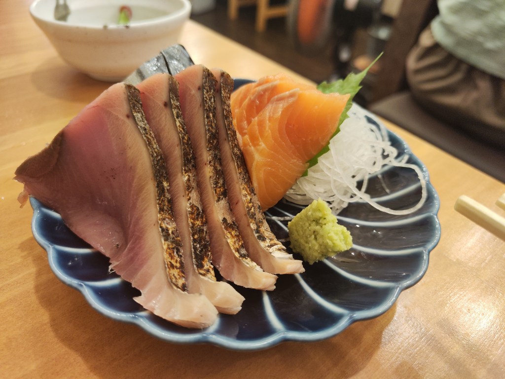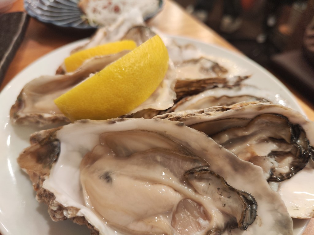 于是,晚饭我们就在便宜的海鲜美食中度过了。作为生蚝爱好者的我们一致认为,很多日本的生蚝口感上都有些creamy,生吃不如蒸着或烤着吃。生食的话,我们更喜欢大西洋的生蚝,矿物味会更突出,可能是我们吃惯法国生蚝的原因吧。