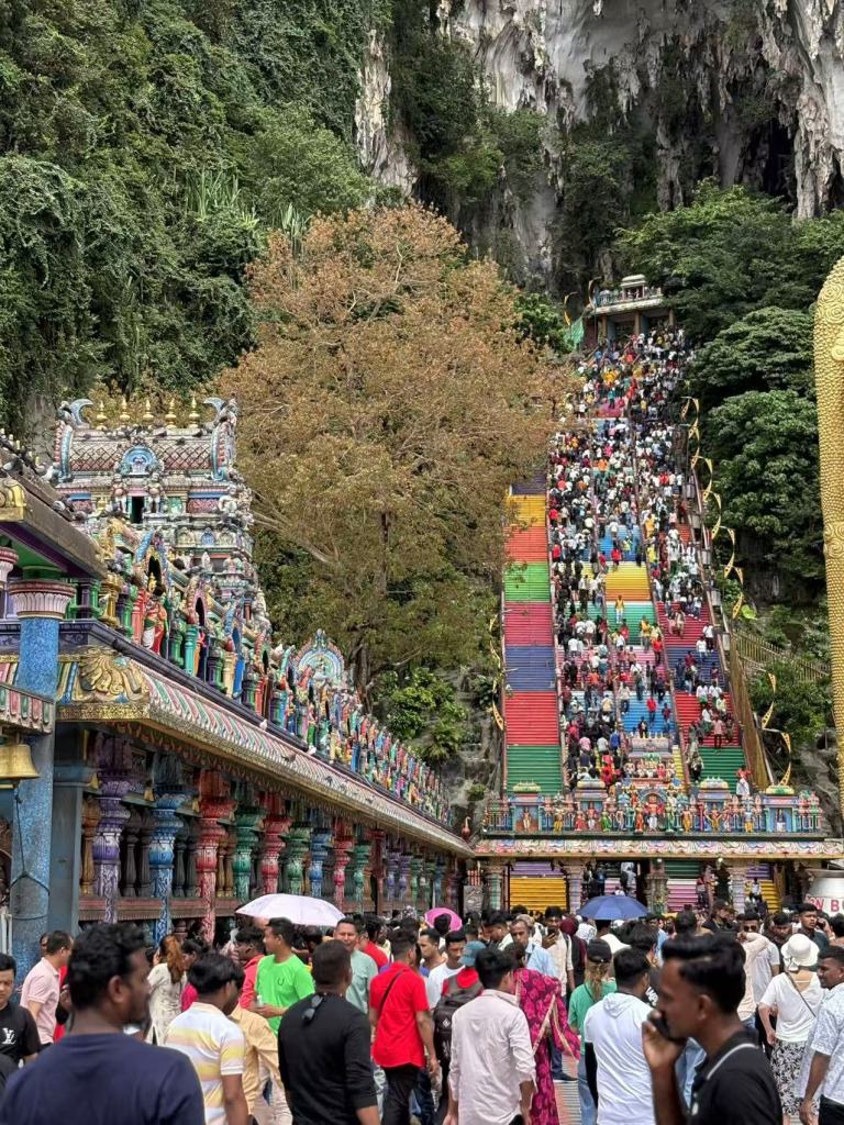 But the moment we saw the golden Lord Murugan statue and the vibrant rainbow staircase, all the frustration melted away. The 272 steps looked like a giant art installation, their vivid colors providing an instant dopamine boost.
