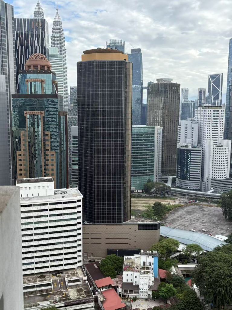 吃完冰沙,我们顺路打卡了双子塔(Petronas Towers)。白天看双子塔已足够震撼,但据说晚上灯光亮起后才是它最美的时刻。这次我们没登顶,因为之后几天住在附近,留待回程再体验。w