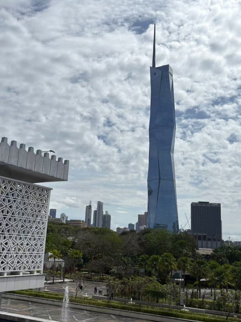 游客很多,想象中的宁静变成了拍照人潮。不过站在清真寺外,可以看到吉隆坡118大厦,这座即将成为东南亚最高的摩天楼,象征着这座城市迈向未来的速度。