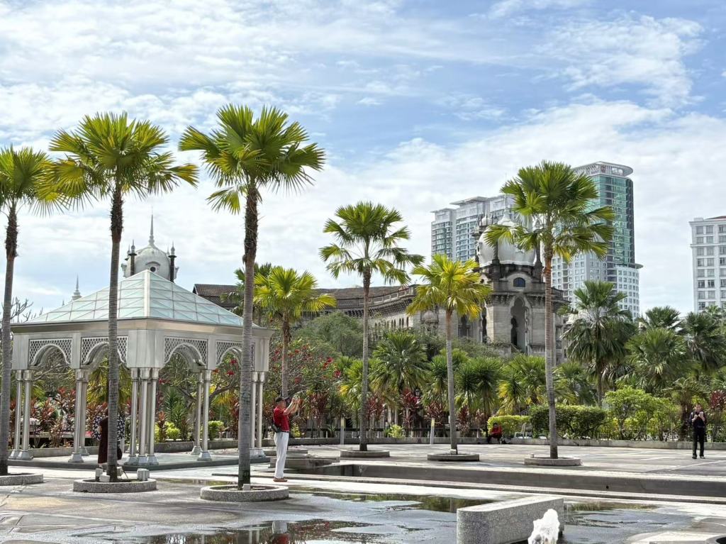 Right next to the square stands the Sultan Abdul Samad Building, the most striking landmark in the area. With red-brick facades, Moorish-style arches, and a towering clock tower topped with a golden dome, the structure carries a stately charm that transports you back to 19th-century British Malaya. Today, it no longer symbolizes colonial rule but serves as a witness to Malaysia’s modern history. Standing here, watching the national flags flutter in the wind, you can feel the weight of the past still lingering in the air.
