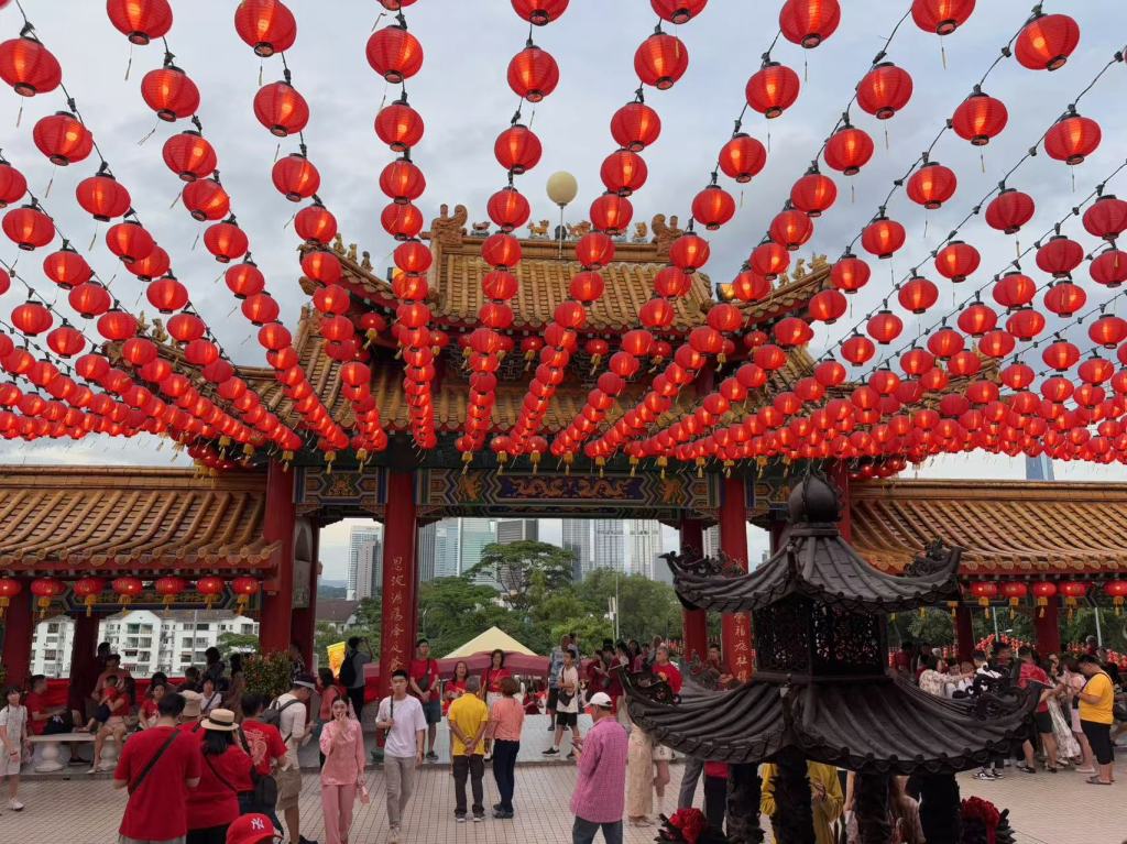 Though exhausted, we figured there was no better way to end the first day of the Lunar New Year than by visiting Thean Hou Temple. However, what should have been a 15-minute drive took over an hour thanks to insane traffic. Our driver laughed, “Malaysia has oil fields, petrol is cheap, postage is only RM2—so of course, everyone drives!”