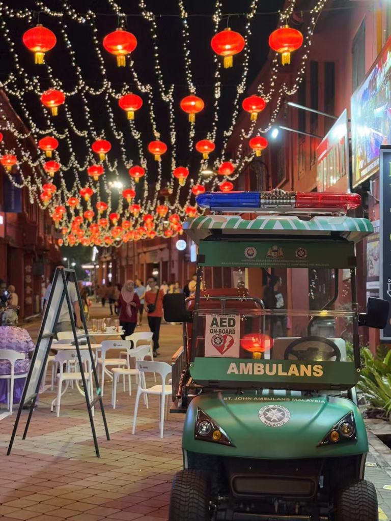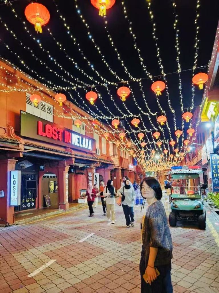 餐后,我们去了鸡场街夜市。街头挂满了大红灯笼,浓浓的年味弥漫在空气中。夜市的热闹和节庆气氛交织,马六甲的夜晚似乎也在每个人的笑声中找到了自己的节奏。
