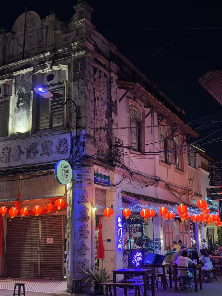 The lively yet festive vibe of the night market intertwined with the sounds of laughter, setting the rhythm for Malacca’s night. We walked along the riverfront bar street, watching the sparkling vehicles, and soaking in the unique fusion of history and modernity that defines this city.