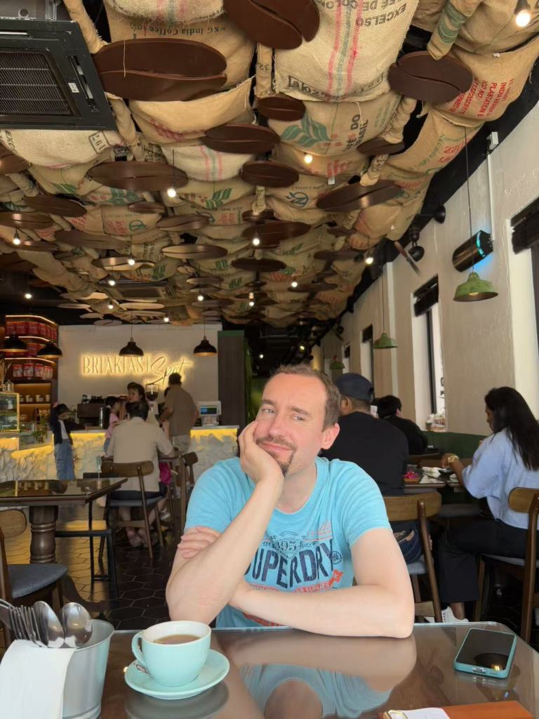 Around noon, we took a Grab to Kuala Lumpur’s Chinatown for brunch and were pleasantly surprised by how good the food was, with a number of Europeans enjoying the vibes there. I had the nasi lemak (coconut milk rice), while Jerome went for an Indian curry. The pandan madeleine was a decent surprise and the coffee were also excellent. This fusion restaurant was a real gem!