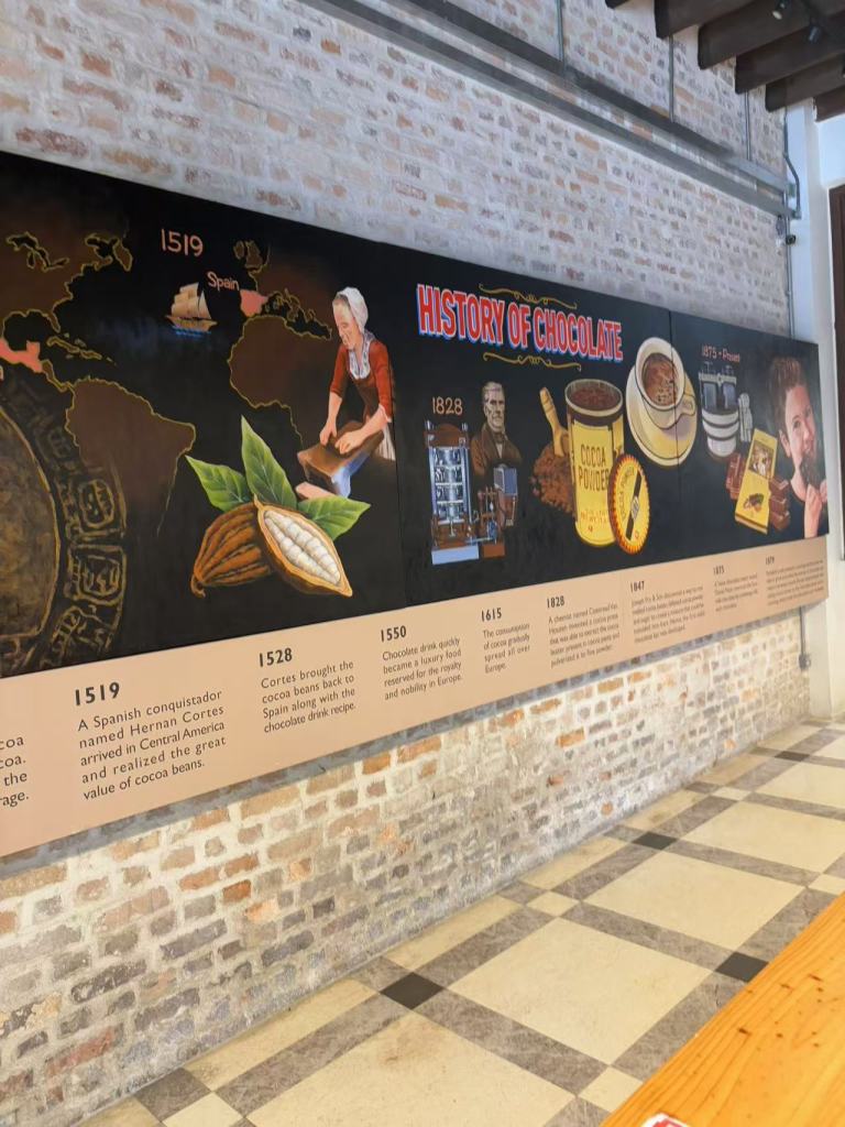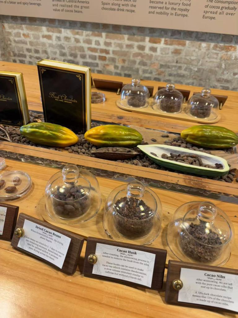 在炎热的白天,我们还发现了一家非常有趣的巧克力店。店内凉爽的环境也帮助我们消除了炎热带来的疲惫,提供了一个完美的小憩空间。