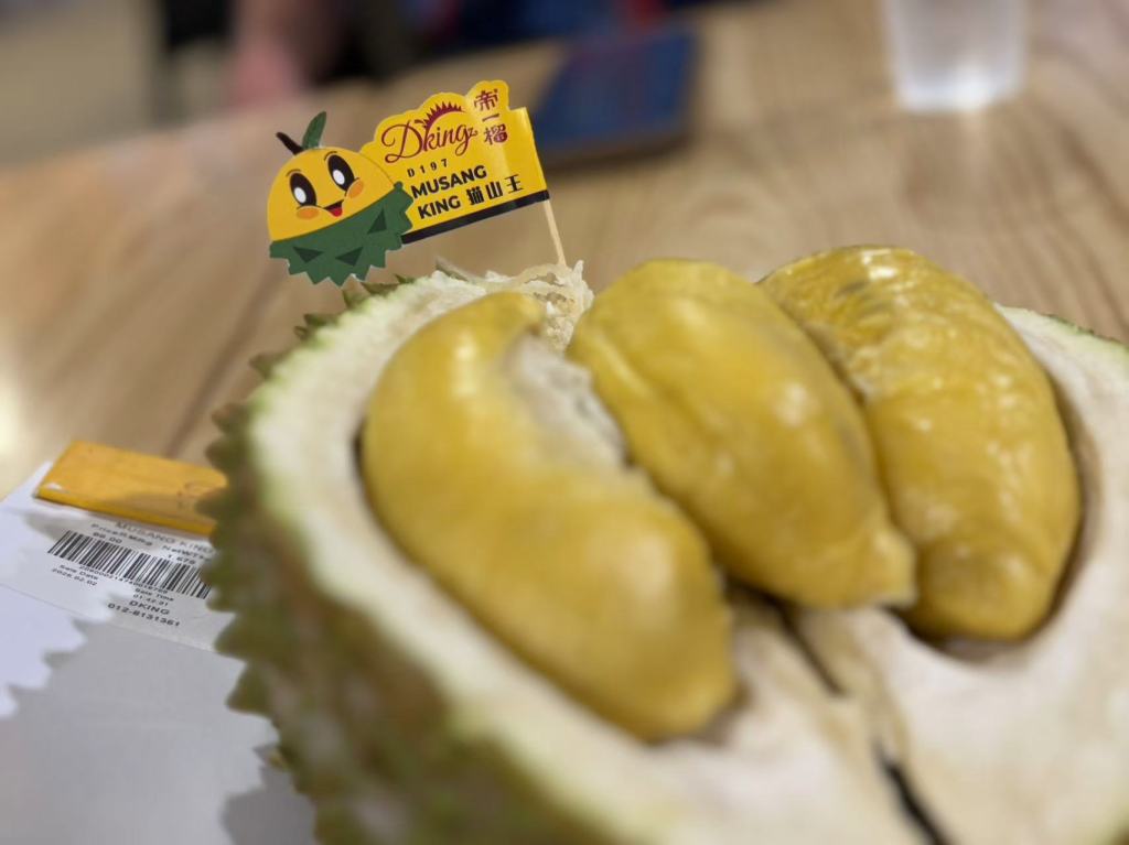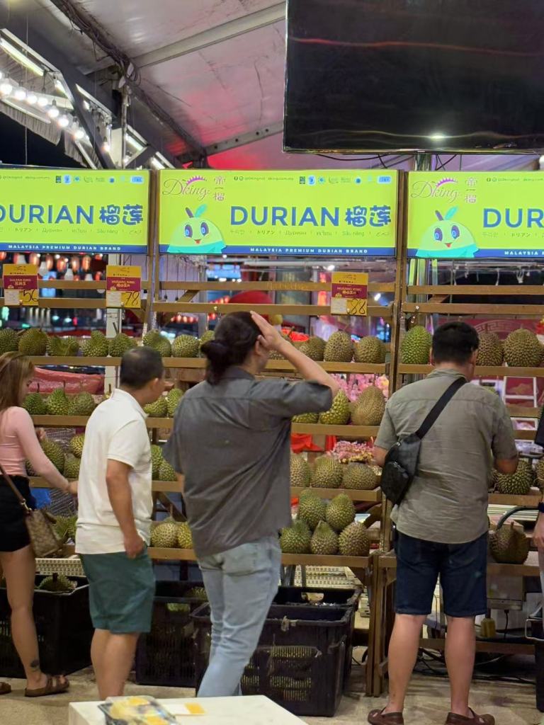 After dinner, Steven took us to a night market frequented by locals, away from the usual tourist hustle and bustle. Many stalls were closed due to the Chinese New Year, but we visited Durian Wonderland, a place like a mini museum showcasing different varieties of durian, complete with karaoke performances. Jerome doesn’t eat durian, but I gave the Musang King durian a try—it was bitter, sweet, and incredibly rich in flavour, perfect for true durian connoisseurs.