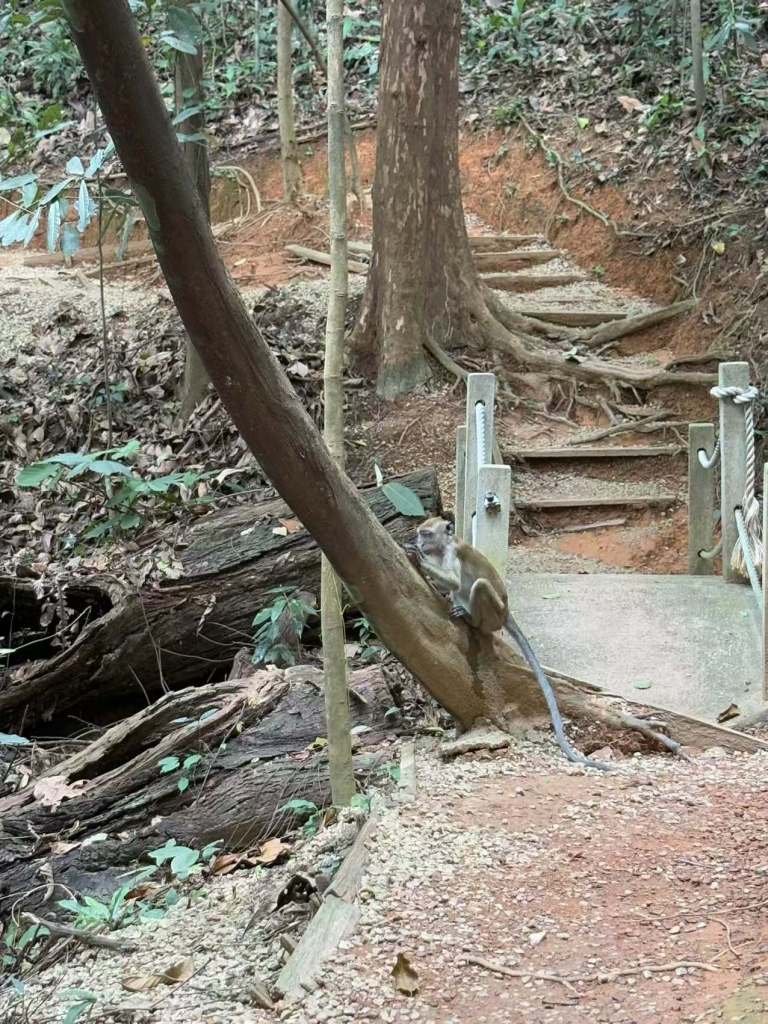 Eco Park是一个郁郁葱葱的绿色氧吧,给人一种与大自然亲密接触的感觉。虽然攀爬的挑战性不大,但沿途的步道却充满了独特的景观和野生动植物的身影。在一条步道上,我们遇到了几只野生猴子,它们非常具有攻击性,我们和另一位外国大汉游客都被吓得连忙跑走原路返回。